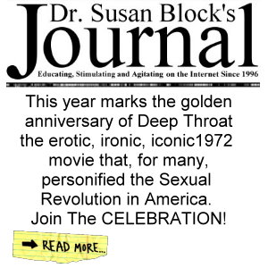 Need to talk? Sext? Webcam? Do it here. Have you watched the show? No? Feel the sex. Don’t miss the Forbidden Photographs—Hot Stuff, look at them closely here. Join our private social media Society. Join us live in studio 😊. Go shopping. Gift shop or The Market Place. DrSusanBlock.tv, real sex TV at your toe tips. Sex Clips Anyone? FASHION, we have fashion! We also have politics. Politics? Have you Read the book? No? How about the Speakeasy Journal? Click here. Ok, how about some free sex advice?