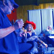 It being our anniversary show, Capt’n Max and I spend much of the program bloviating about how great we are, and sharing the “secrets” of our marital longevity. Last year, for our 26th wedding anniversary, we had a huge orgy filled with naked singers, dancers, wrestlers, sploshers, suckers and fuckers. Other couples might have billion-dollar bank accounts, million-mile upgrades or thousand-carat his-and-her diamond rings, but nobody throws a gazillion-watt, raise-the-rafters, orgiastic, Felliniesque, bonoboesque blast of a wedding anniversary bacchanalia like we do, as we also did for our 25th, 24th and for many anniversaries before that. But we’ve also enjoyed more intimate celebrations, and thankfully (considering the tech difficulties), this is one of those.