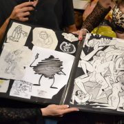 Then the sexy, somewhat shy French artist pulls out his portfolio and shows us some rather more explicit drawings of people having sex as well as animals and other cartoon creatures. Ooh-la-la!