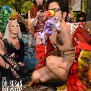 Less than a year ago, she first appeared on The Dr. Susan Block Show in our November 2016 Splosh n Art episode (picked up by the New York Post), where she wowed the sploshers with her Monkey (Andres) who threw monkey poo (really chocolate pudding), as monkeys do. For this, she picked up a SUZY award for “Best Animal Play.” She also joined us in Bonoboville for New Year’s Eve, our Anti-Inaugural Circus (where her champion pets put on a Big-Top-worthy show), our 25th Wedding Anniversary (another great pet presentation that could have been called “Pets Against Trump”), FemDom Earth Day, and our Wonder Woman Femocratic 4th of July (check out the Youtube clip).
