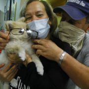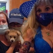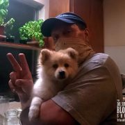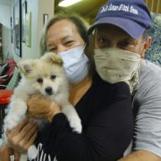 The only one without a mask is Chico Peggles Quintana, Ana’s new and ridiculously adorable Pomeranian puppy who lets me hold him for the photos, as long as he can lick my face between shots.