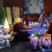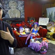 Drunkenly, we slobber over Adriana’s special deck of sexy Tarot cards, the Tarot of Sex Magic, that almost makes my Aleister Crowley Thoth Tarot Deck look like the Disney version.