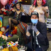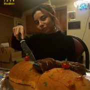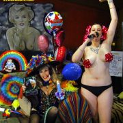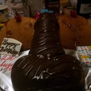 What a happy birthday show! Riley Reyes and Rhiannon Aarons what sapiosexual Bonobos! And Rhiannon actually brought a birthday decoration! Mina De Sade, she looks like such a boss and such interesting conversation and tattoos! Daniele and Chef Be Live are always the life of the party and they had a Tahitian island background too! I love the pictures of Aimee cutting the penis; she’s so serious. Happy birthday Abe! He’s the best IT guy we have!