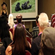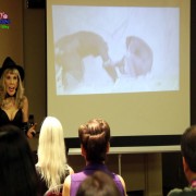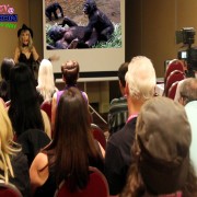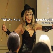 We had such a deliciously good time at last year’s DomCon, we just had to come back for seconds. This year was even yummier and more intense, since I gave a talk on The Bonobo Way, FemDom-Style and oh my Goddess, what a fantastic, enthusiastic audience. It’s always a pleasure when most of my crowd is dressed up sluttier than me, gets my kinky jokes and goes bonobos for bonobos. Plus I was deeply honored to spot several VIPs in my little “class,” including DomCon’s commanding “Headmistress,” whip-cracking pony rider and bonoboësque founder, Mistress Cyan Herself. A glittering class of stellar students seeking knowledge in the FemDom ways of the bonobo.