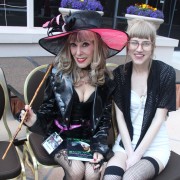 Just before departing the hospitable Hilton, we stopped for a quick kissie-kissie/hoka-hoka/selfie-selfie at the Mistress Tea. As soon as I saw the Earl Grey and krumpets, I wished I had worn a white hat, pearls and chantilly lace, like DomCon Pony and Pet Show Mistress Ellen.
