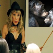 Many submissives release their Inner Equus at Mistress Ellen’s famed DomCon Pony Shows. Others release their Inner Dog, Gerbil, Cat or Canary at the Pet Shows. It’s great to get in touch with the vibrant, primal parts of ourselves that connect with non-human animals. But what about the non-human animal that is closest to human, in terms of DNA and everything else, including that ineffable “missing link” feeling? I am speaking, of course, of our kissing cousins, the bonobos, which is what I was there to speak about at DomCon.