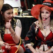 To help us say “Kung Hei Fat Choi” are two adorable, congenial and very funny Chinese comediennes, Zeo New from Anqing, China, and Sibyl Jin from Taiyuan (no, that’s not a misspelling of Taiwan; it’s a very ancient capital of the Northern China province of Shanxi), plus Mistress Erikka, FemDom, switch, fetish model and kinkster extraordinaire.