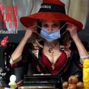 I also wonder if I’ll be accused of Chinese “cultural appropriation” since I’m dressed like Suzie Wong in a Chinese brocade jacket, red push-up bra, triangular hat and a yin yang necklace, my hair straightened by SUZY award-winning “Best Hair Stylist” Mark Brown, but Zeo and Sybil assure me straight hair is not the sole province of Asian people.