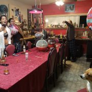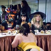 Meanwhile, the sissies and subbies served us Earl Grey and chamomile with petits fours and cake as we chatted about flogging, tRUMP, incels and #MeToo, checking our raffle tickets to see if we were the lucky winner of a big bag of dildos.