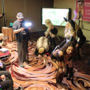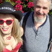 That ‘is, I opened up the format to include some friendly, talented bonobo sapiens (human bonobo lovers)–Phoenix, champion erotic wrestler Mistress Kara, her partner of 14 years, Jack Friday, and Elena Rayn, dressed to dance (or trance) like a punk Burning Man pixie ballerina–“acting out” various key parts of the talk, in my signature Commedia Erotica fashion, making it a more textured, multi-media presentation.