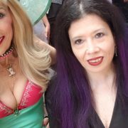 I got even luckier when three very special SUZY award winners (missing from the Mistress Photo) sat at the table right next to us: the extraordinary Mistress Tara Indiana, founder/director of Dominatrixes Against Donald Trump (whom we’ve known for over a decade), Mistress/Artist Sheree Rose (whom we’ve known for over two decades) and luminous punk artist Goddess Soma Snakeoil, whose hair matched my eyebrows and who had, in 2015, seduced me into attending my very first DomCon. Memories!