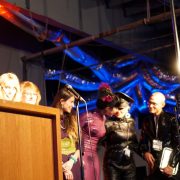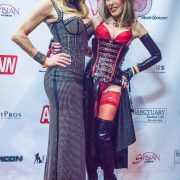 Before the formal program, we took a waltz around the Red Carpet, hosted, as always, by the Glamazon Queen of DomCon, Goddess Phoenix. To keep from getting confused, I tried calling our Phoenix “Little Phoenix,” which wasn’t easy because she’s almost 6 foot in high heels. Goddess Phoenix, winner of 2016 and 2017 SUZY awards for “Most Dazzling Domme” and “Best Female Flogger,” was as dazzling as ever in a black and silver gown that showed off her assets.
