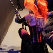 We found a few seats on the sidelines to watch the stage show featuring Goddess Phoenix and Mistress Porcelain dominating some guy (I assume it’s a guy, but who knows?) in a Star Wars “Stormtrooper” outfit.