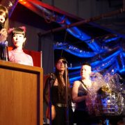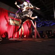Next onstage was the lovely Miss Joy Luck presenting an artistic performance piece with a ballet dancer/submissive whose “strings” she pulled like a kinky marionette.