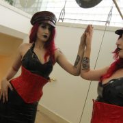 First stop: Demask and the Domme Collective booth where we thanked Louva and Mistress Isabel Sinclaire for the sensational outfit.