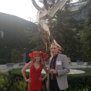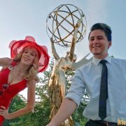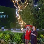 Abe snapped a few photos of the three of us posed before the giant Emmy statue which has long graced the entrance of ATAS, though it used to be ensconced in a small body of water, and now it’s on dry ground surrounded by exotic plants.