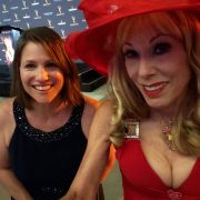 Though I wore latex last year and the year before, the climate-changing temperature was just too high for the rubber to meet the road without melting into a hot mess. Though the Harvest Moon heralds the Fall, it was scorching summer-hot. So I slipped into my coolest cocktail dress: a red spandex number topped with bling around the shoulder straps.