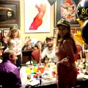 What a nice gathering—just enough to call it a party, and we did party with plenty of drinking, eating, speechifying, spanking, a little dancing and carousing, and no fighting. Fighting and shooting break out in a lot of parties these days, but not in Bonoboville, at least not on Capt’n Max’s 80th birthday.