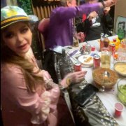 Amor’s “date,” Mr. David Harris, arrived in a dapper purple suit and tie with matching fedora and purple heart-shaped sunglasses. He even led the toasts “to Max!” One toast led to another (thanks to scrumptious Barbancour Pango pineapple-flavored rum), and before we could say “birthday suit,” David had his shirt unbuttoned, and then completely off, though he kept his tie on, continually toasting “to Max!”