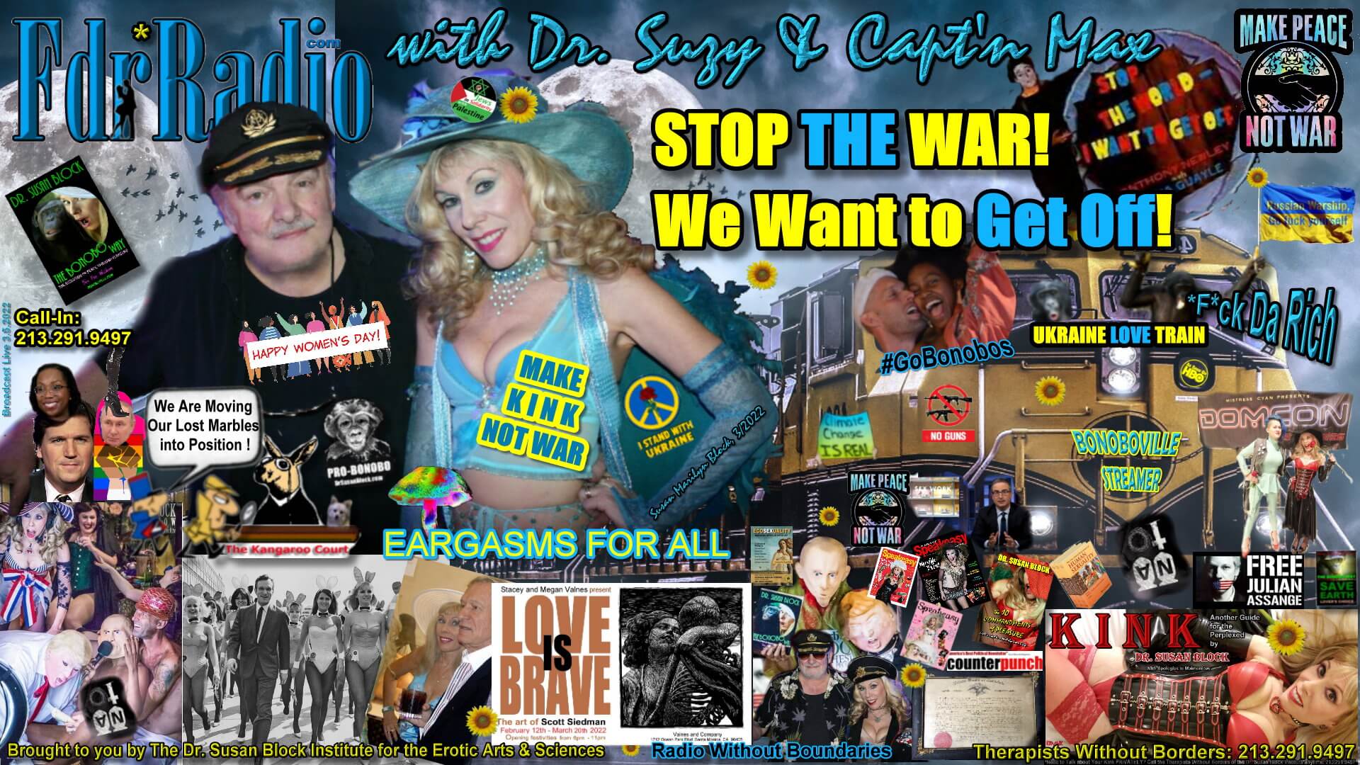 And we talked about sex workers in the Ukraine. The Ukraine Love Train baby – Go Bonobos! And tonight is still a Ukraine Love Train, but we also have room for anti-war Russians. Really, we have room for all