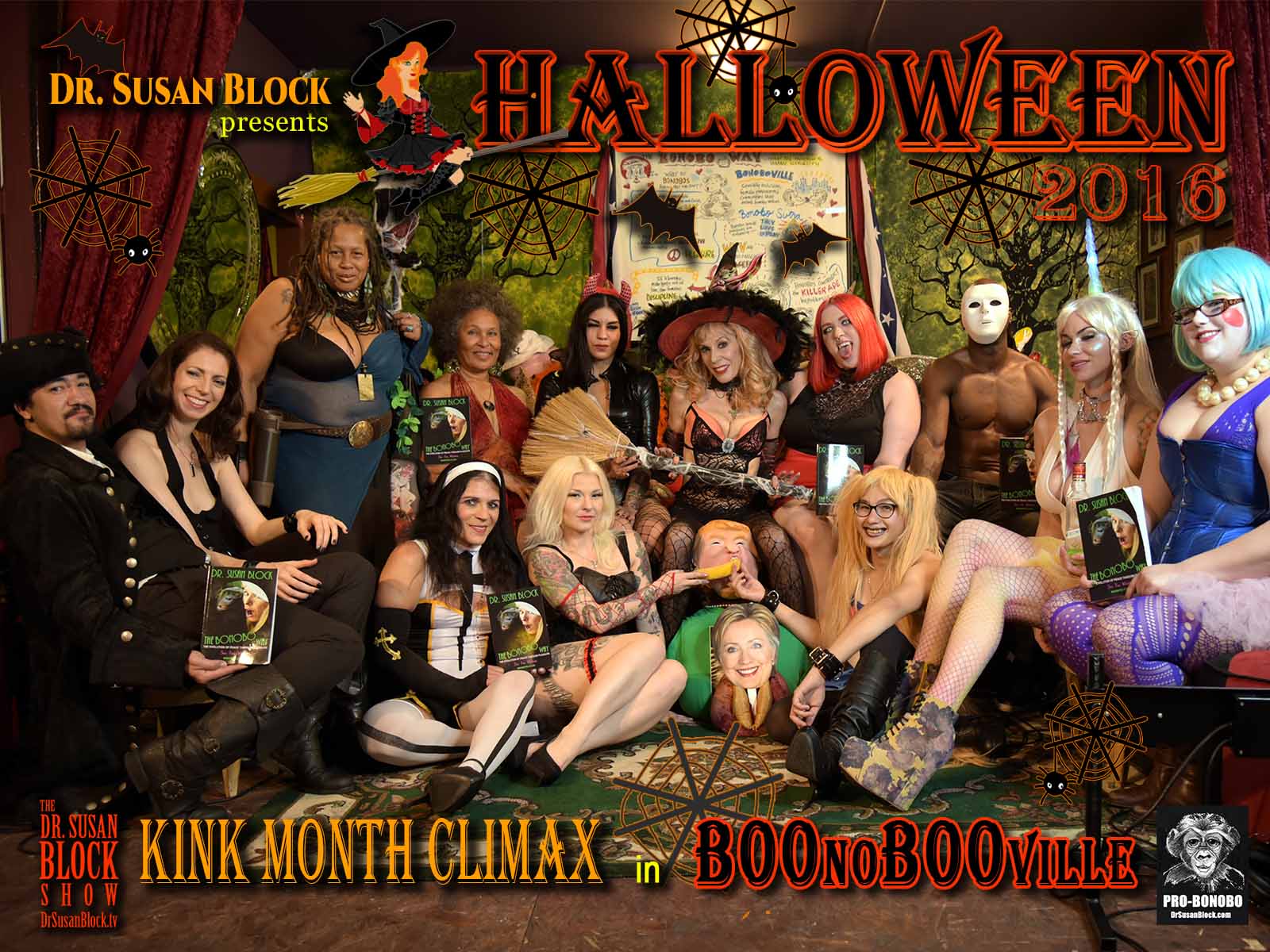 Now I’ve experienced a lot of crazy Halloween’s and even some scary sex in my day. But I would have to say between our naughty Sailor moon sucking himself off, holding a horse dildo, Mistress Eva making out with me and smearing lipstick all over my face, our very own bonobo and naughty nun Jacquie Blu getting her sin pounded out of her by a sex machine, and flying around on a vibrating dildo broom while the queen herself Dr. Susan Block bestows her pearls of wisdom. I just died with happiness! and whether I was in heaven or hell, there’s no where else in existence I would ever want to be. XOX And did I mention that I get one of the best views in the house?! If you missed this week show and after party I would highly reconsider how you are spending your Saturday nights!! I love bonoboville and my bonobo family!