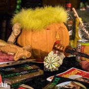 Throughout the show, I perform perverse acts with the Trumpkin as my Trumpocalypse therapy, such as force-feeding it’s big mouth the business end of my Dildonic Broom and keeping it under gag order with various phallic gourds.