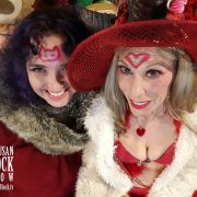 Meanwhile Mistress Elle Zelena flogs and spanks Bratty Wulfie, and everybody in the Womb Room, drunk on history and collective mythology, starts to get into the Lupercalian spirit. As the februa fly, I spy Christine Dupree in the crowd and invite her on stage to mark a lipstick heart on her forehead and give her a spanking for being late. Might as well throw a “naughty girl” spanking into the Lupercalian pandemonium.