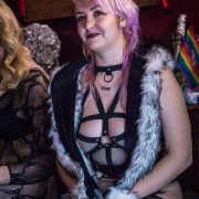 Like most pro-dominatrices, Goddess Phoenix looks powerful in leather and latex; I’ve seen her in both at various DomCons. But lately, she’s been wearing softer, more comfortable fabrics, off and on. She looks just as powerful as ever, maybe more than ever, because she breaks through with her message of glamorous Amazon (no, not Jeff Bezos’ Amazon; Wonder Woman’s Amazon), aka “glamazon” female power to folks who might be into leather. I love leather, but I haven’t worn it much lately, partly because it’s expensive and, well, animal rights, anyone? As for latex, I it looks so shiny and sexy, but it’s not exactly easy-to-wear nor to have sex in.