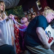 The Tiber River is played by our “Most Congenial Sex Worker” 2018 SUZY award winner, Kacy TGirl, looking elegant and svelte in a black lace catsuit, “Funniest Comedienne” SUZY award winner, Sunshine McWanes, looking a little sleepy but happy, and bubbly Blossom (whose bubbles are especially appropriate in playing a raging river).