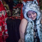 Bonobo Betty of the Pan Paniscus Bonobo Tribe puts on her Pan Horns for Lupercalia 2019. Photo: Jux Lii