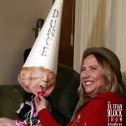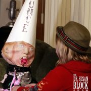 Her other job is to make sure that our Trumpus doll keeps his dunce cap on his head and the penis pacifier in his mouth. That’s the only way I’ll allow even a Trump doll in Bonoboville, under gag order with a dildo.