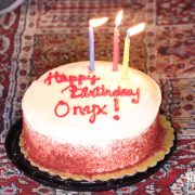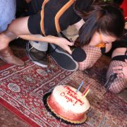 When we come back from the break, Blossom brings in the cake for our own Onyx DeValle’s birthday.